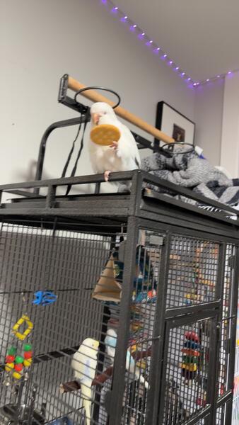 message miahkav08 about this ad Very loved Quaker parrot. We act as he is a male but theres no way to tell without a blood test which we have not done. He comes with 3 huge cages and a big box of toys perches treats and food. He also comes with a bird stand.he is fully hand tamed doesnt like to be cuddled much but can be. He does speak a very big amount his favorite words are toast, duck as thats his name kisses,step up and of course his famous peekaboo. He also says a bunch more but they are just randoms . Hes not super loud and when lights are off and cage his cover he wont make a peep. We arent supper strong on price. Phone number is 3209794214 located in Kerkhoven mn and willing to travel up to 1 hour for the right home |