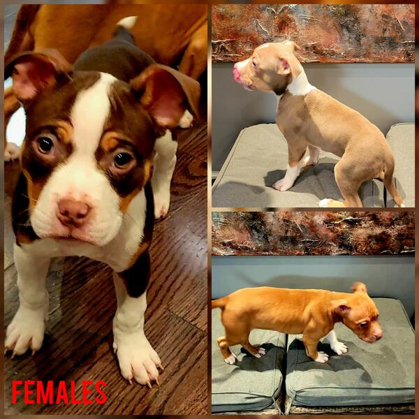 message americanpocketbully about this ad 2 males and 3 females Available Now Born October 10th Puppies have been to the vet for their 1st shots, deworming and health check. |