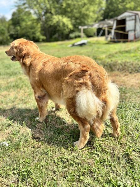 message lulu66 about this ad I have an almost 7 year old golden retriever. Shell be 7 in January. Shes had a three year rabies back in February if Im not mistaken, Ill have to double check. Shes a very sweet girl. Gets along with all dogs, cats, chickens and ducks as well as goats. She doesnt have a mean bone in her body. Never has growled or bark at someone. Shes great at getting her nails trimmed, getting a bath and getting blow dried as well as groomed. Shes a perfect dog all around. She loves to go on walks and loves to play in water. Shes fully crate trained and house broke. |