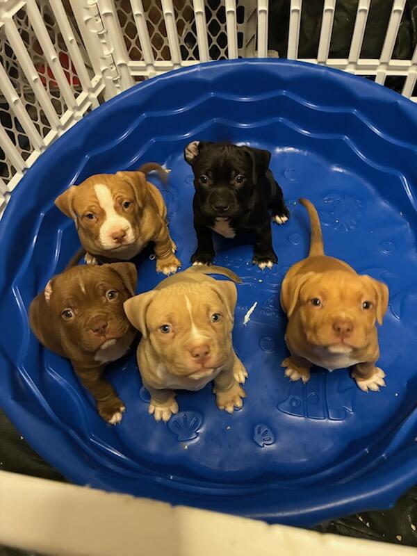 message jlal about this ad UPDATE- 1 male, 1 female left Pocket American Bully Puppies born 10-6-25, ready to find loving homes! Dewormed, vaccines utd, crate and pad trained. Raised with other dogs and children! Sweet, cuddly, curious and fun. |