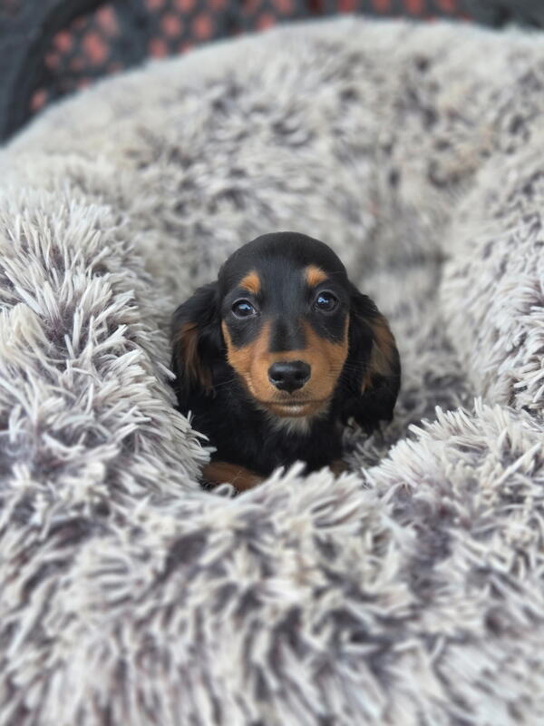 message mnnbthg252 about this ad Longhaired black and tan puppy. Born 10/02/25. Vet checked, vaccinated and dewormed. All ready to go. She uses a doggy door. Gets along well with others. Very happy and loving personality. www.marebelladachshunds.com |
