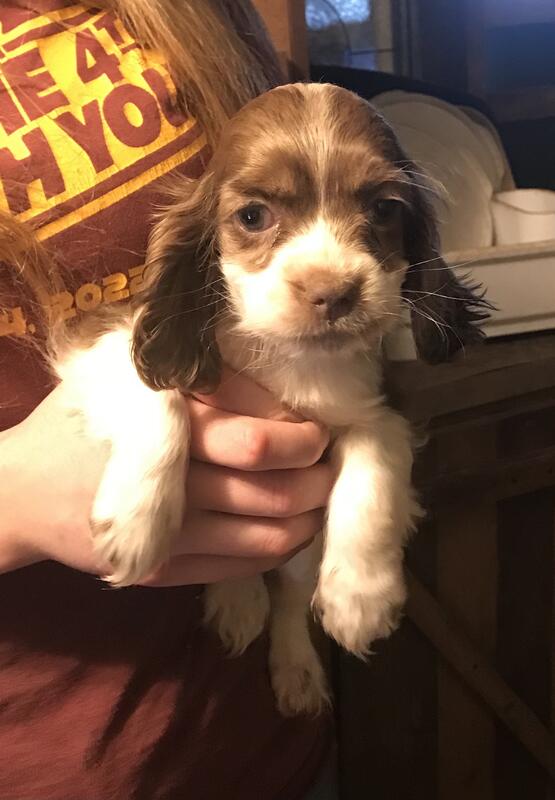 message cowgirl5829 about this ad We have four beautiful Cocker Spaniel pups available. They are 9 weeks old, current on shots and worming, tails docked and dew claws removed. They are not registered. Located in Strunk, Kentucky. First picture and last picture are males. |