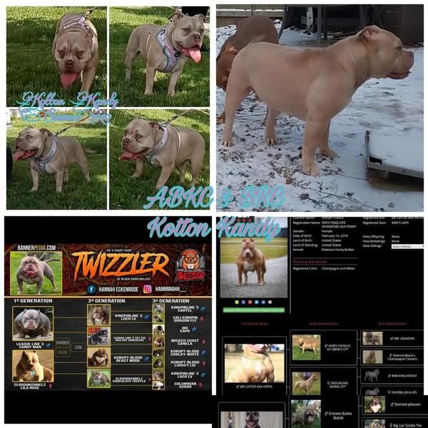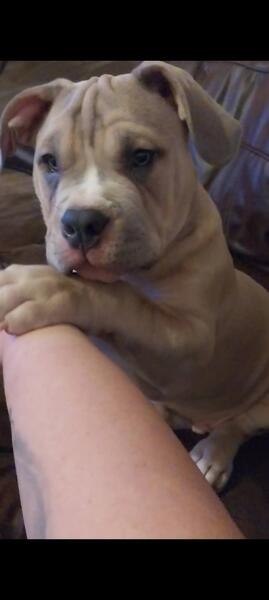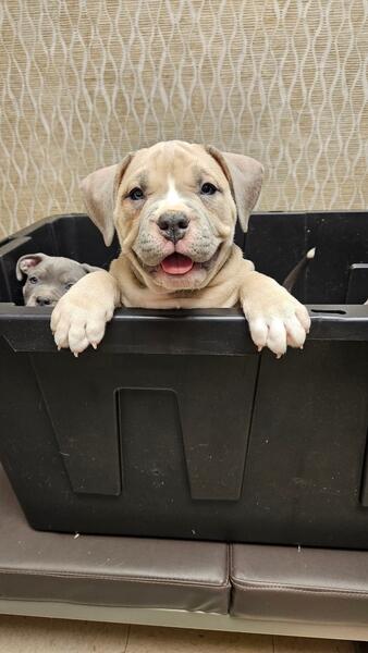 message kelsnjessbulls15 about this ad 5months old 51lbs a week ago Fully updated on vaccines and exams Vaccines: dalpp3/3, Lyme2/2, rabies1yr Knows: sit, down, hi5, housebreaking going well. Walks well on leash and harness. Abkc papers champion lines I have studs ped I'll post it as soon as I find it. |