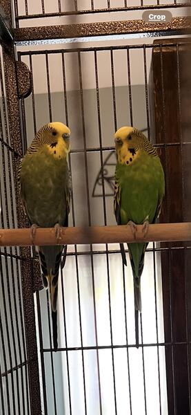 Pair of male parakeets. They are about 4 years old. Super cute!