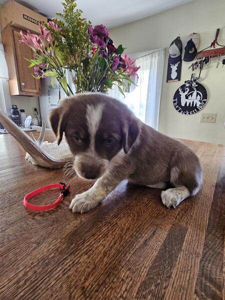 message cwbtc7636 about this ad Texas heeler puppies. Mom is a chocolate heeler! Dad is an Australian shepherd. The puppies are chocolate, brown and black and white with spotsmixed in. Two females(purple and pink collars) three males (black, blue and green collars) Born on February 5, ready for their new home on April 2nd. Up to date on shots and dewormer. Call or text 419-545-1083 |