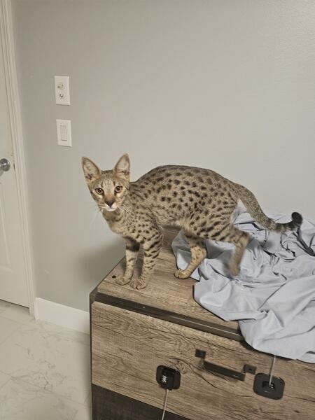 message snicki about this ad Beautiful socialized and sweet F2 Savannah cat for rehoming: Age: 10 mohnts Gender: Female (sprayed) Health: very healthy, has all her up to date vaccination Comes along with other cats and small dogs if properly introduced. Rehoming fee: $3800. Serious buyers only Location: Tampa FL |