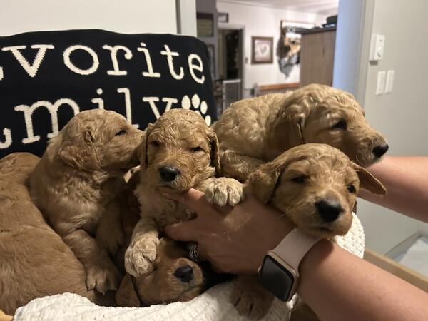message jlake about this ad We have 3 females left standard size golden doodles parents on site and father is around 70lbs and the mother is around 60lbs great dogs The puppies will be ready after June 20th 2025 they will have there fist round of shots and dewormed They was born on may 2 2025 call or text 765-881-0277 or 765-881-0306 |