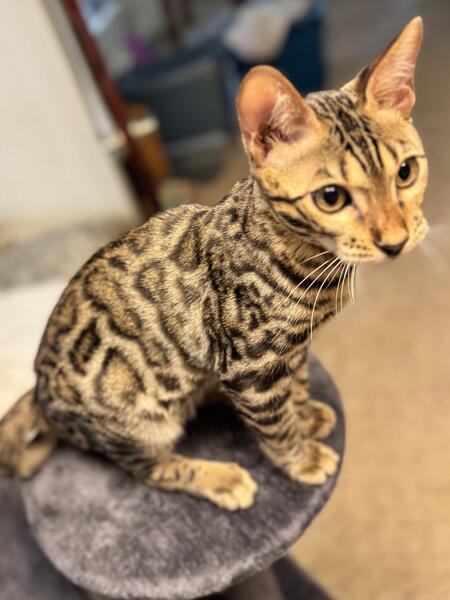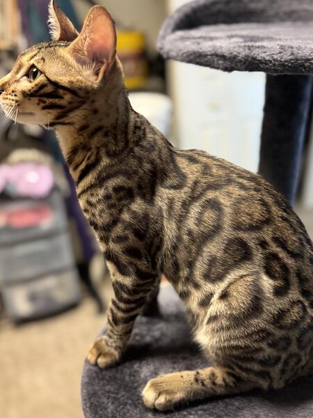 message mrskodiak about this ad NAME FRANKINCENSE THE ALURER ! ASK FOR BREEDER PRICE DO NOT EMAIL THROUGH THIS AD RESPONSIBLE BREEDERS WILL CALL NOT TEXT OR MESSAGE 814-956-0001 GOLDEN PRIDE EXOTICS IS A TICA REGISTERED BREEDER DEPOSIT TO HOLD. OIL CITY PICK UP OR DELIVERY AVAILABLE . ALL PAPERS TESTS INCLUDED . NEW YORK BENGALS JASMYNE MARIE (GRANDMOTHER IS RUSSIAN) X GOLDEN PRIDE ALADDIN NIGHT DANCER CARRIES: AGOUTI MINK SNOW BROWN TIGER RUST GOLD GLITTERED INCLUDES: His tower and all his stuff . Healthy happy boy loves cuddles and of course plays fetch. Born 2/27/25 . |
