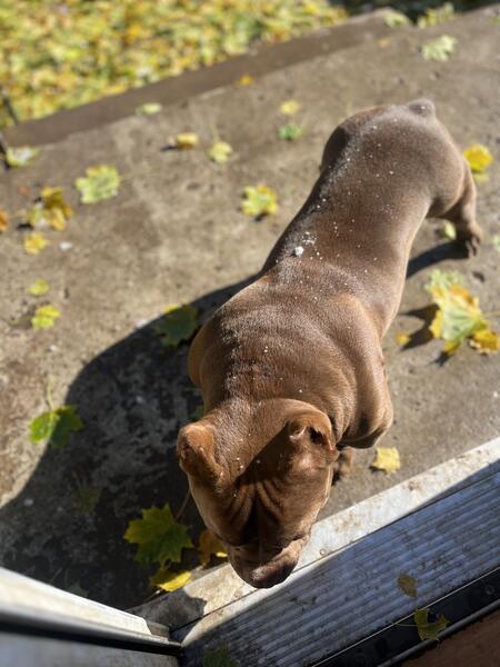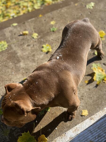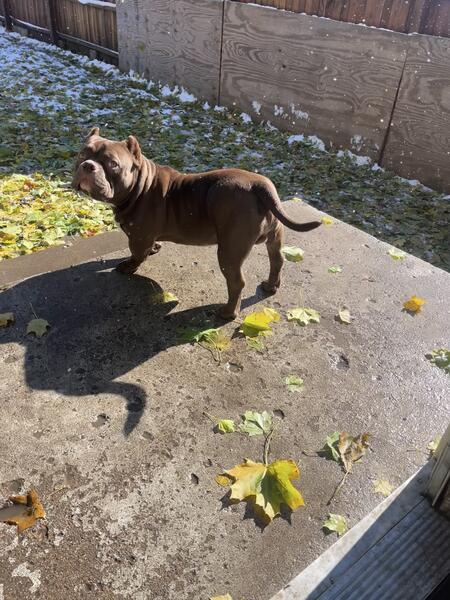 message frdmhw4239 about this ad Met ROLO born February 1st 2025 hes 9 months old. Hes a chocolate/white and has some tick on white. Both mom and dad are very short and compact mom is very muscular built (mom is on site) No trades! Willing to do pet home at 1,000 with no breeding options and no paperwork. Any other questions please feel free to contact us Paperwork in hand 517-358-3893 if I dont answer leave a message or text me I dont answer random numbers but if you leave a message Ill call back. Thanks and have a wonderful day |