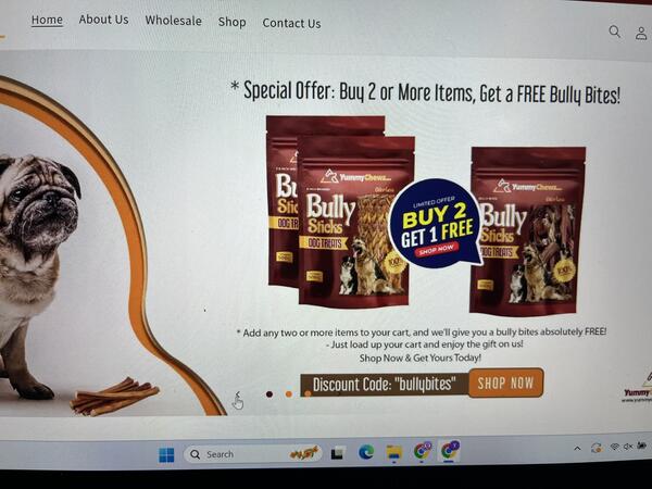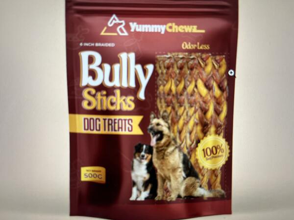 message askkhan about this ad (odor-less) braided bully sticks and let them enjoy a healthy and nutritious treat made from 100 percent all-natural cattle sourced from free-range cattle. Our pure bull pizzle sticks contain no additives or preservatives and make for a perfect alternative to rawhide. A true taste sensation, the chews help keep your home free of teeth marks and dog drool by encouraging good chewing habits and letting your pup work out all that energy on a full-flavored snack. Different prices on the site you can select Buy two bags and get bully bites bag free Yummychewz.com |