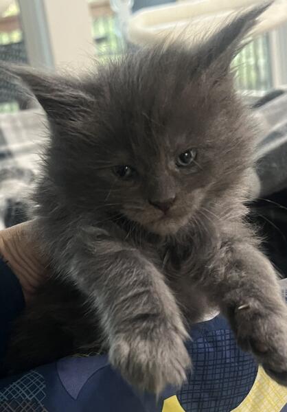 message hellcatcoonz about this ad European Maine Coon Loved and raised as our own if you have any questions about our babies please let us know Blue Smoke Maine Coon Kitten Female, 11Weeks Ready for her forever home! This gorgeous blue smoke female Maine Coon kitten has a sweet, playful personality and the classic Maine Coon charm. Shes loving, social, and already showing amazing size and coat quality. Included: Up-to-date vaccinations Health check & records Litter-trained Raised in-home with kids, and plenty of socialization She will make a stunning companion. |