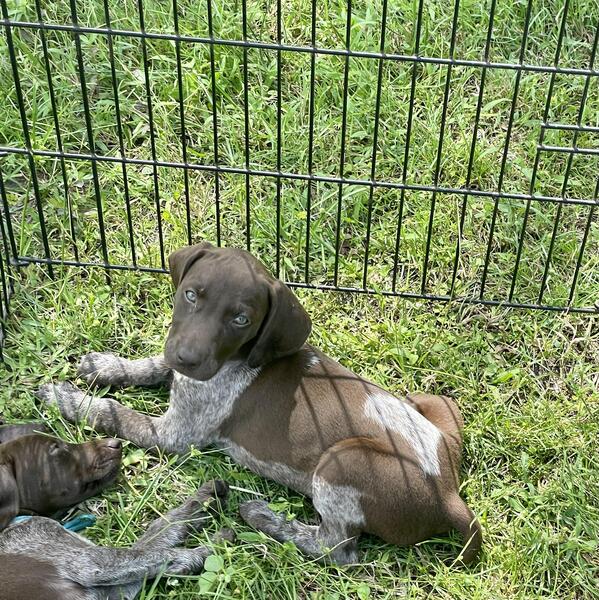 message brttnn6018 about this ad These little ladies are looking for their forever homes! They are 8 weeks old and ready to go home this weekend. They have started potty training and know how to use a doggy door. They have been raised on our farm around all the different animals and kids. They have been exposed to live quail and have a great natural drive. They come with; * Lifetime breeder support * Health Guarantee * Health certificate * 30 days of health insurance through Trupanion * Return contract * Limited AKC registration with the option for breeding rights once the dog is 2 years old and health tested Walkers High Caliber Clear for all 256 genetic health conditions that Embark tests for OFA Hips Good OFA Elbows Normal OFA Cardiac Normal/Clear Sargent CB Acral Mutilation Syndrome Normal (clear) Coagulation Factor VII Deficiency Normal (clear) Cone Degeneration (German Shorthaired Pointer Type) Normal (clear) Degenerative Myelopathy Normal (clear) Hyperuricosuria Normal (clear) Von Willebrand Disease I| Normal (clear) OFA Hips Good OFA Elbows Normal OFA Cardiac Normal/Clear message brttnn6018 about this ad |