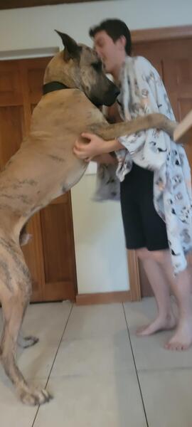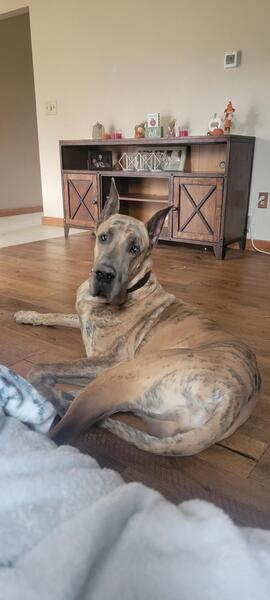 message serenitydanes about this ad AKC GREAT DANE Dozer is a gorgeous blue brindle and ready for the ladies he is proven with pups on the ground. He comes from excellent lines on both sides of his pedigree. He is 36 inches at the withers and 150lbs and is still filling out. Dozer has an excellent temperament and loves everyone he meets. * Located in Carroll, Ohio 43112 |