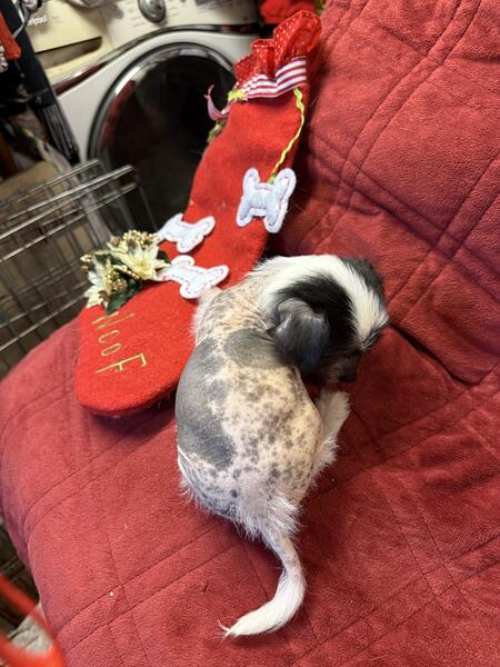 message coachmac about this ad dad akc chinese crested ;mom akc chihuahua ready for christmas very hairless. for pet. fla health cert and 2 sets shots vet micro checked home raised and loved. i do have a pet transporter that goes door to door reasonable cost. located in jacksonville fla (N E fla) last 6 pics is his hairless SISTER |