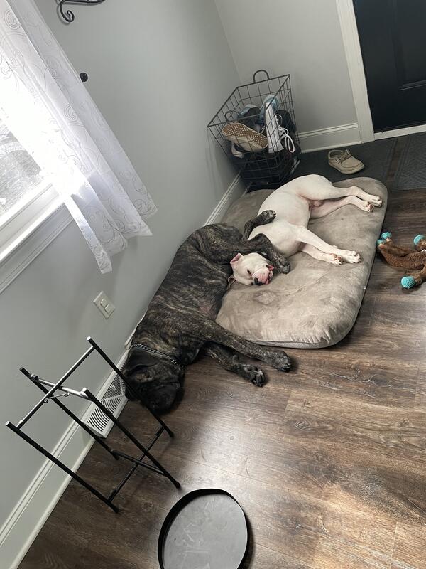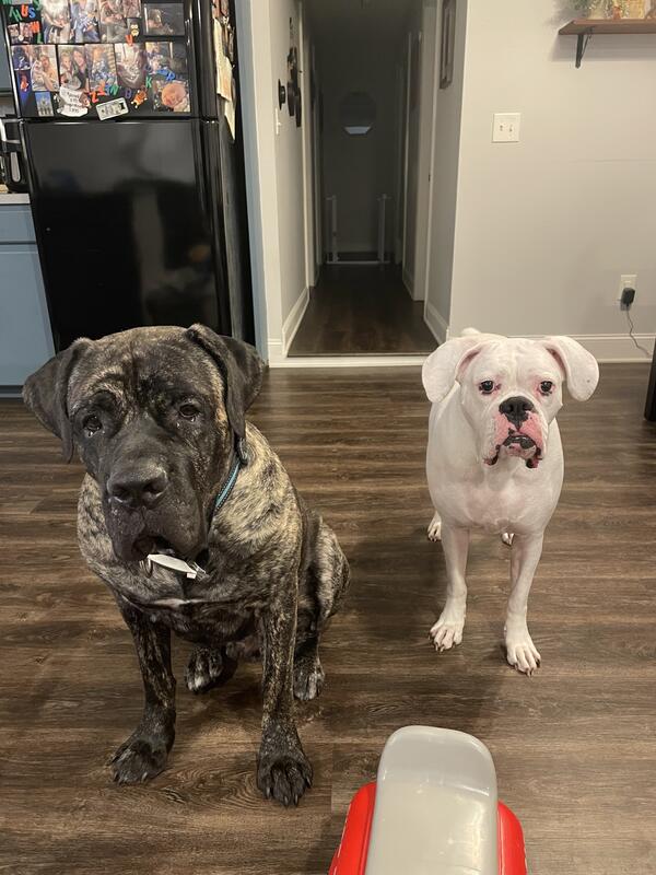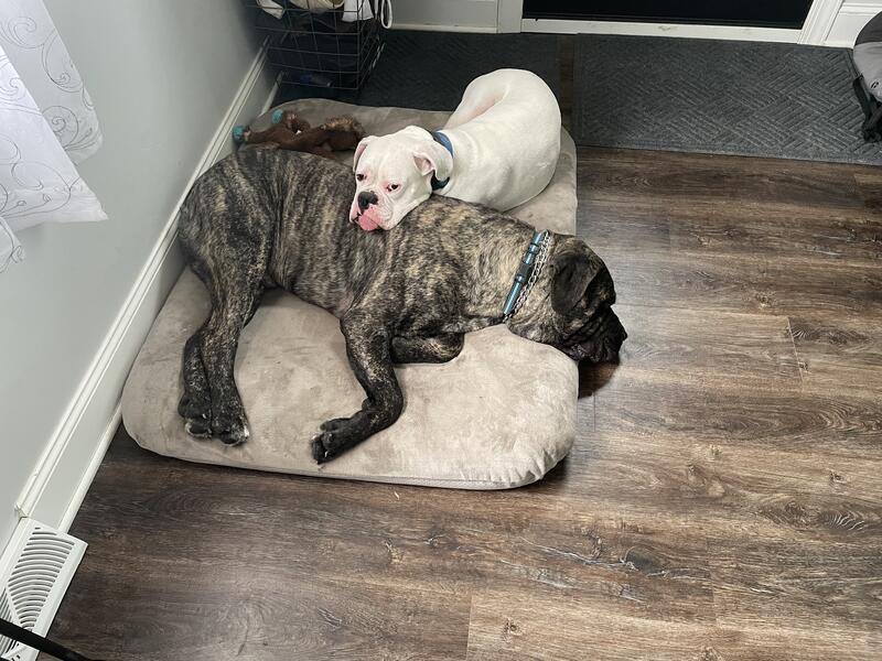 message cclites0629 about this ad Both males. Chubbs is the boxer, moose is the corso. They are neutered. Housebroken and crate trained(dont need crated when someone is home but both experience separation anxiety if left alone Great with kids. Going through a separation and cant afford to care for them any more. Rehoming fee applies, must go together. They are bonded. 330-690-9921 |