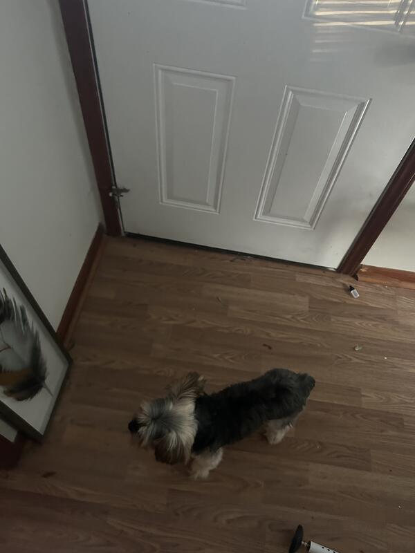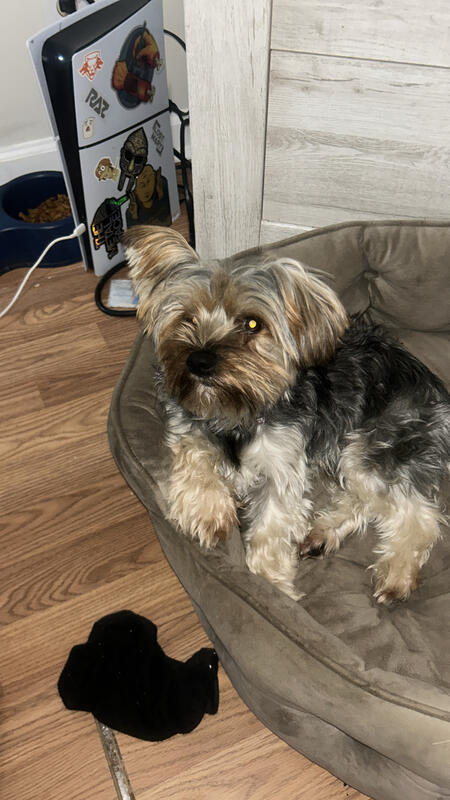 House trained Yorkie. Hes about a year-old. Very sweet, very loving and full of energy.
