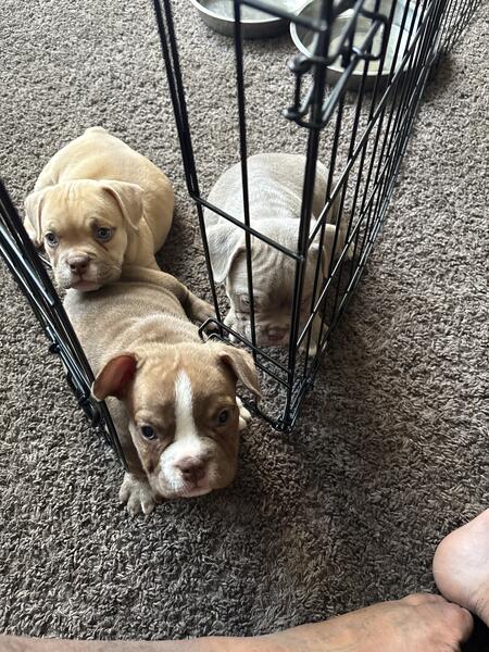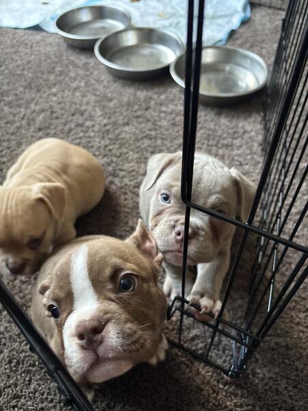 message bigbully614 about this ad These pups are eight weeks old ready to be rehomed email for more details. First set of shots already done grade a health inspection something you cant miss out on email for details. Big Duke $500 lock in stud |