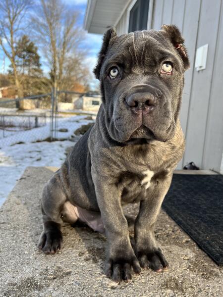 message mittengirl about this ad We have a litter of Lilac and Blue Cane Corso puppies with them piercing blue eyes. Their parents have excellent temperament. Very protective and extremely loyal, but also love our FedEx man. These guys are raised in our home with four small children. They will leave with declaws removed, tails docked, age-appropriate, vaccines, and several dewormings. These guys are extremely smart. 500 to hold puppy of your choice! Good home is a must. Call/text nine eight nine 8 two 0 zero three 5 six ONLY serious inquiries please |