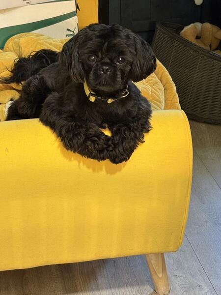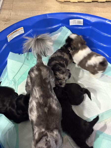 message luvsumdogz about this ad One male available shown with his parents. The all black is the father which he takes his color from his mom. He has one blue eye, very cute. He is not neutered at this time. He is up-to-date on shots, crate trained, 95% potty trained. He likes car rides and his little squeaking toys. Must be able to pick-up. Adoption fee is neg. |