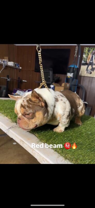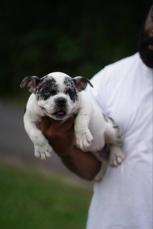 Black Merle female pup 4 months old she carries chocolate and tri she is 2X bizzy bone 1x crown 1x infrared 1xhoneycomb
