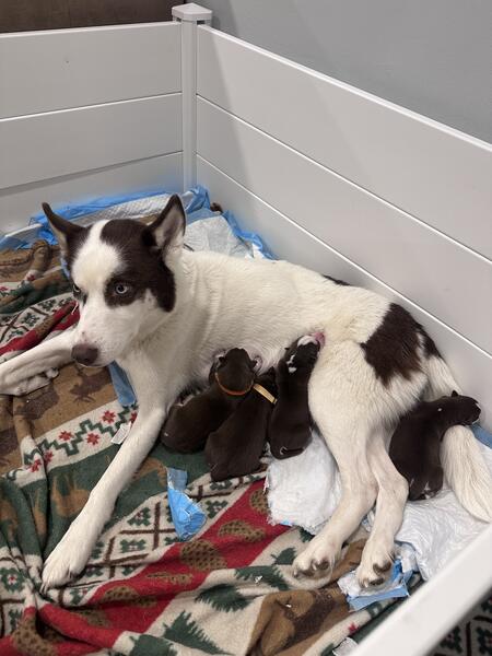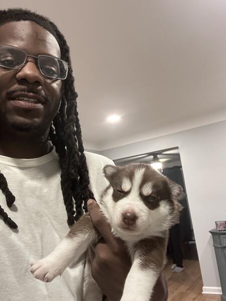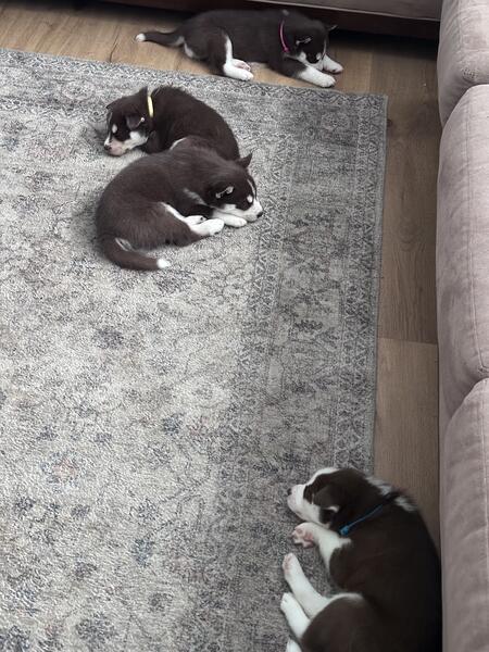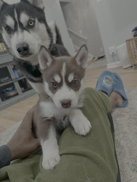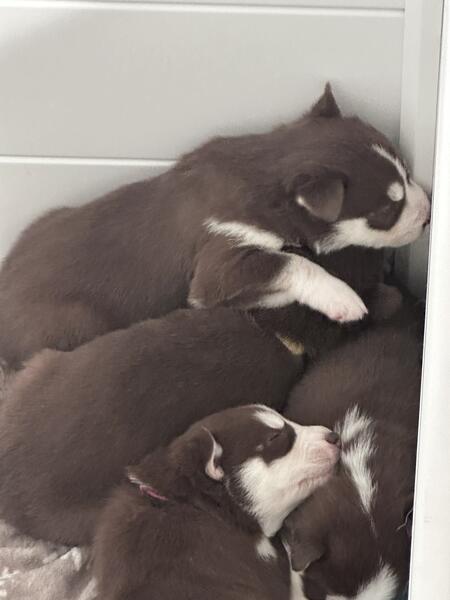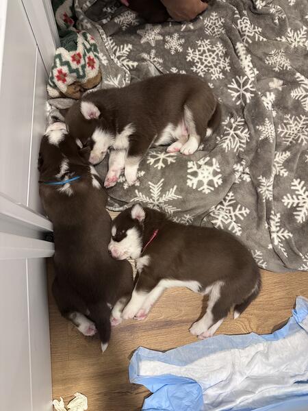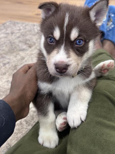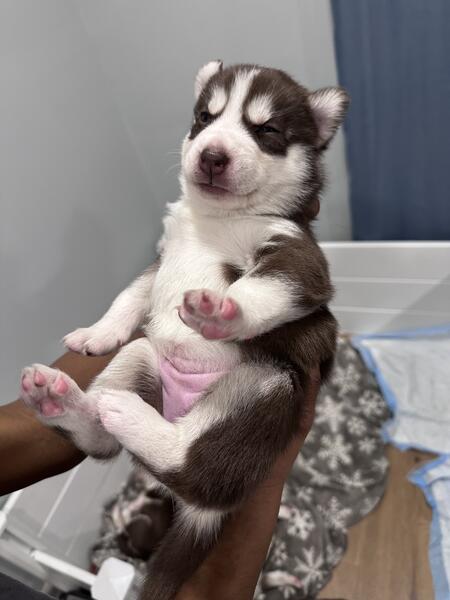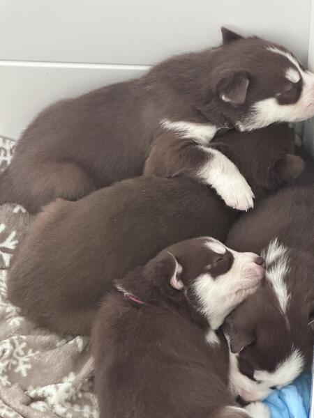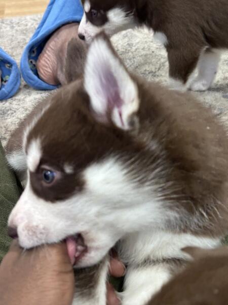 message hnrplvnmx8c about this ad Mother of pack is rare piebald spotted husky, 2 blue eyes. Father is traditional black and white with slight brown streaks. Has one blue and one brown eye. One female and Two males left out of 4. All brown, you wont see too many pure huskies this color |