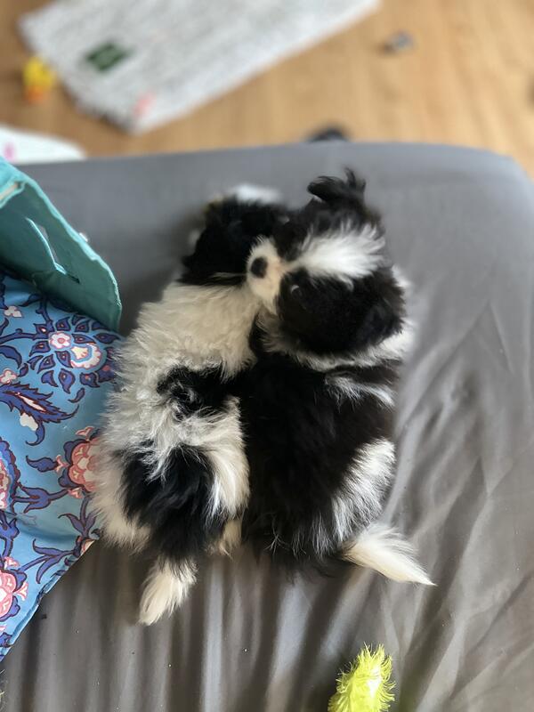 message tomorrow77 about this ad His puppies are nine weeks old father was a teacup. Pomeranian and the mother was a 4 pound Shih Tzu. They are working on house training. They are puppy pad trained with limited access super adorable and playful ready for their new homes. |