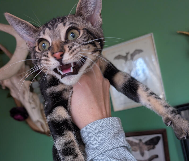 message sephorabengals about this ad Kodiak is looking for his forever home DOB 6/7/25 He is a brown marble with a beautiful soft shiny coat. Super sweet and playful. He absolutely loves playing with other cats. He's neutered, UTD on all vaccines, vet checked, microchipped, registered, and will come with a 3 year genetic health guarantee and 30 day free pet insurance Kodiak is a B3N Registered Bengal (2nd gen outcross) |