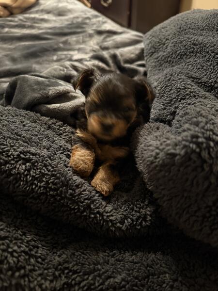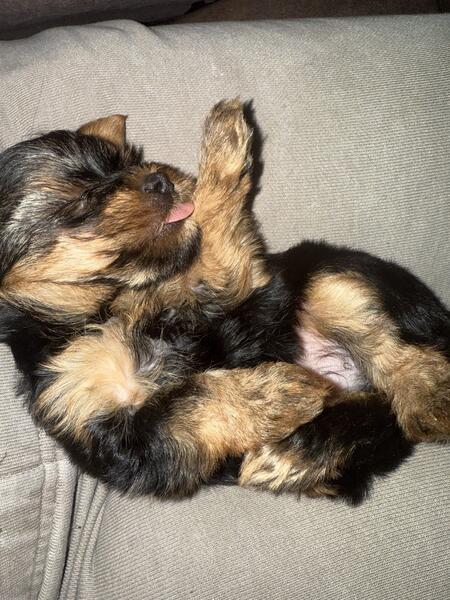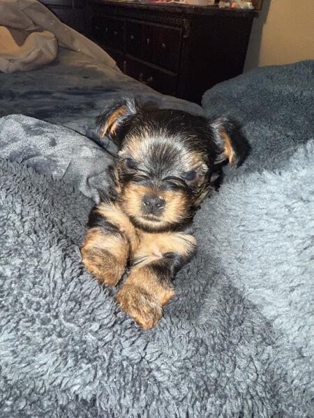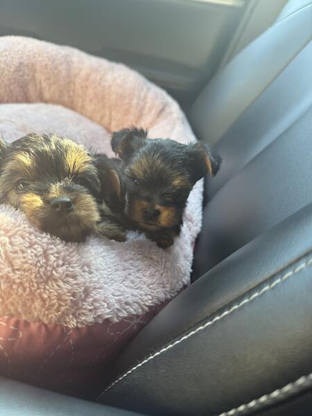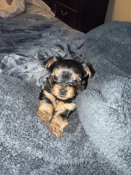 message itiseyeme about this ad Hey there I have 2 boys available. Mom 4.5 pounds and dad 6 lbs are on site. Both full blooded Yorkshire terriers. Tails are docked and up to date on first set of shots documented to take home. 2 beautiful pad trained boys. One is very active and other is quite shy but warms up quickly! Eating soft puppy food also still feeds on momma but she is tired. DOB Valentines Day 2025 586/843/4757 |