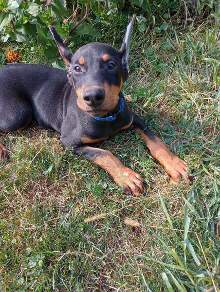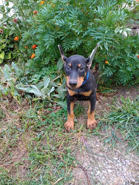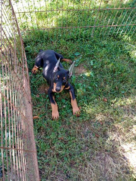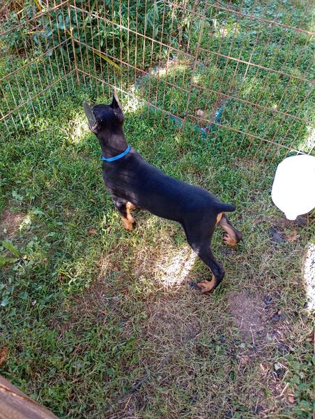 message doghouse1 about this ad Doberman Puppy AKC black -rust male born 6-24-25 ears cropped has first puppy shot (s) beautiful well bred puppy out of champion American show lines sold with limited registration. Contact for more information text 8seven8-88zero-0four50 Hickory Pa |