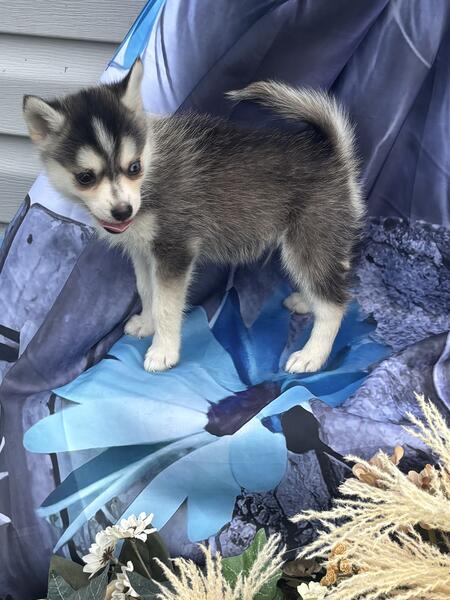 message mkpomsky about this ad Check out Rambo he is the 2nd smallest in a liter of 6 he will be super small With his mom only weighing 7lbs (Pomsky 2nd gen) and dad being 25 lbs 1st gen he is now 9 weeks old and ready for his forever home. He is up to date on shots and worming Text 7405022910 |
