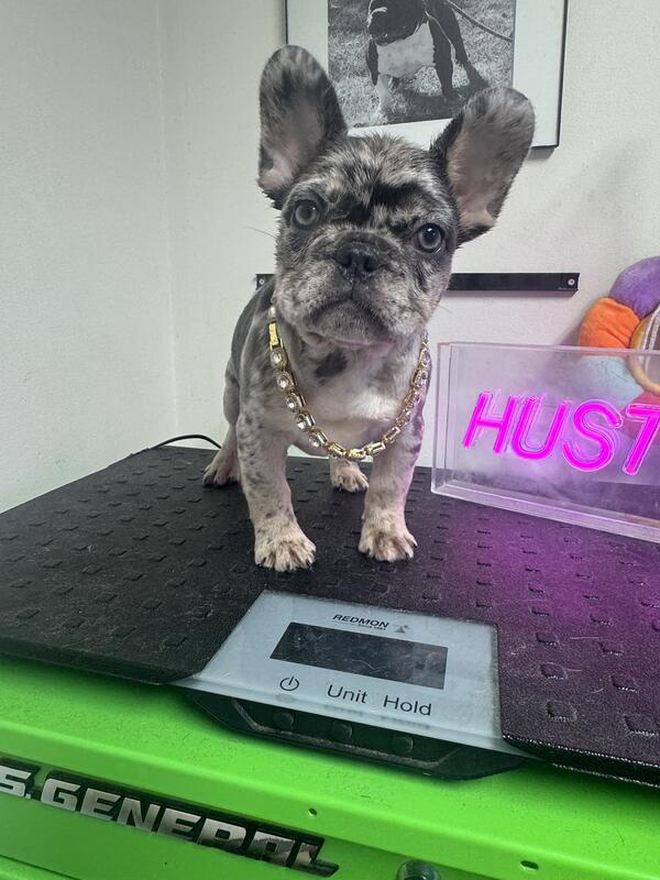 female Minni frenchie she is a fluffy carrier dob June 1 akc regestered pet home only
