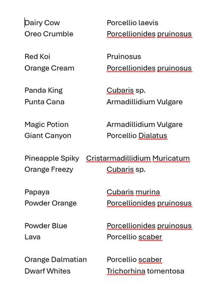 message stngrsxbc about this ad I've attached a list of isopods we work with. Prices are available at our sales counter visit www.StingersExotics.com for our shop location and phone we will ship FEDEX Next Day if needed. |