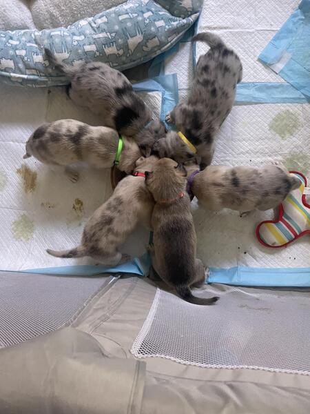 message joannkimak about this ad Six adorable Siberian husky/merle pitbull lab puppies for sale. Will be six weeks old on October 29 and will be available to go to their perfect new home when they are eight weeks old. There are three males and three females. They are potty pad trained and eating solid food. They will all have their first shots and be vet checked. They each have very distinct personalities and are very playful and loving. They get along well with adults and children. They are very active puppies and love to play. We are looking for their forever homes and are looking for serious buyers only. More details can be given if you are interested. Prices vary from $800- $1000 |