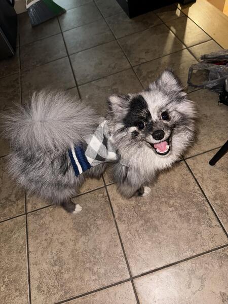 message mddtsnhopj8 about this ad $500 stud fee or pick of liter! His name is razz, hes a 7lb Merle fox face Pomeranian! Hes 10 months old. Message me if interested 6067945794 |
