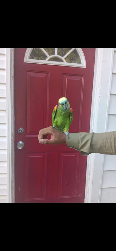 5 years old Male blue front Amazon , tame , sweet , handle able