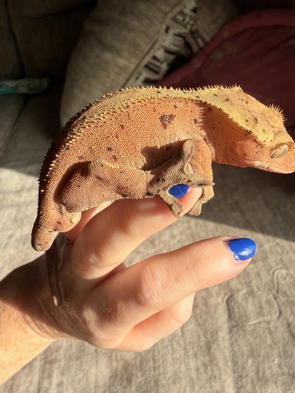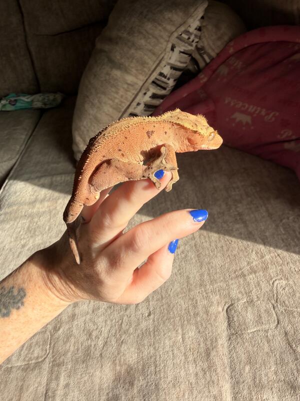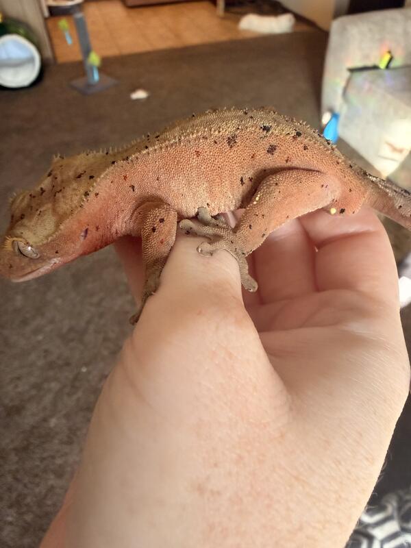 message devin28 about this ad Hello I have a red base confetti Dalmatian male crested gecko his name is Pierre he is super sweet 8 months old does absolutely amazing with handling and is just an all around amazing gecko, he has a heart shaped ink blob on his side and his spots only get better with every shed he is going to be a stunner. He is on Pangea CGD I will send flavors he likes and anymore information you would like please text for faster response. He does not come with an enclosure only him. |