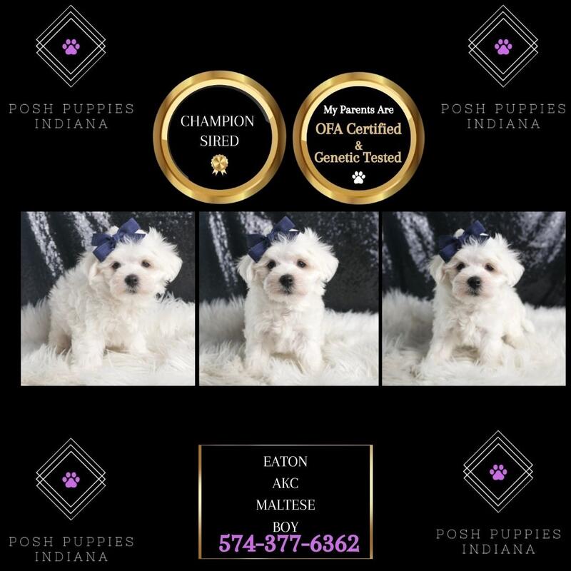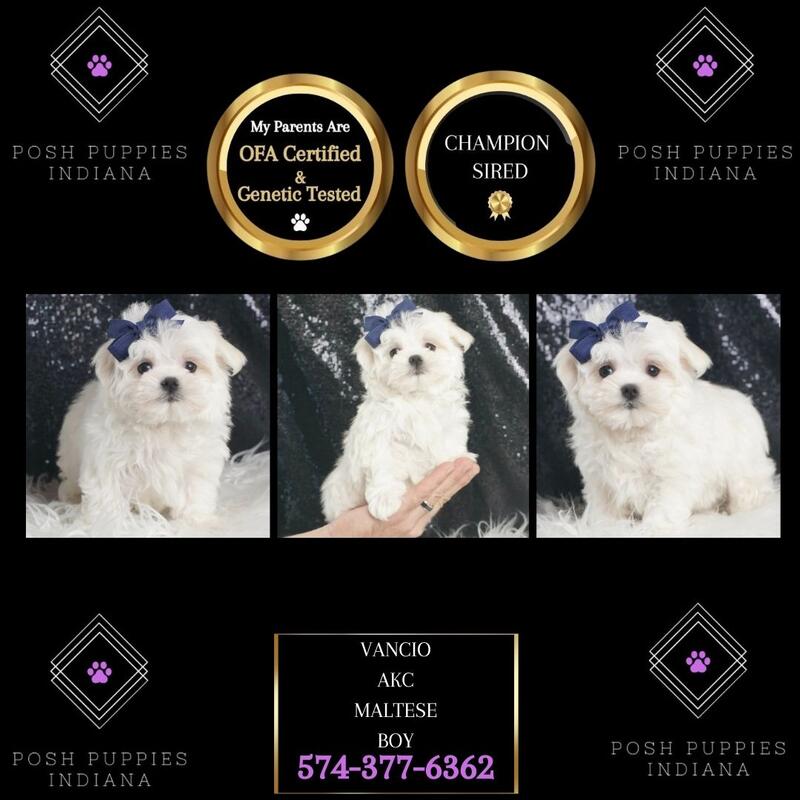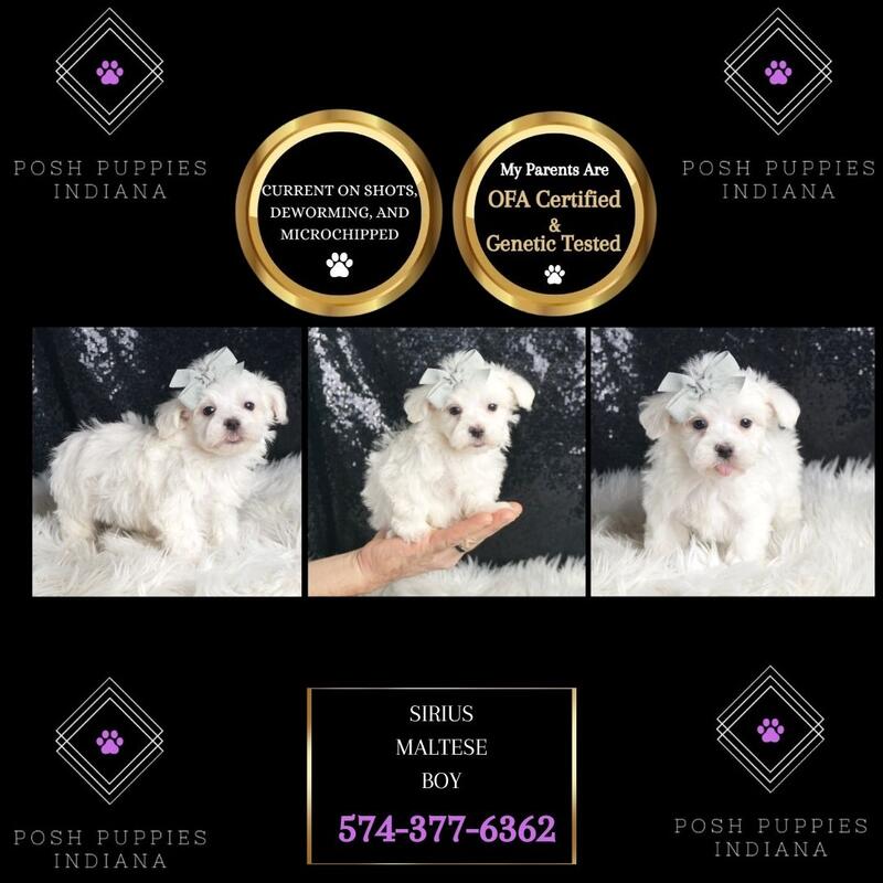message poshpuppiesindiana about this ad CALL OR TEXT US TODAY 574-377-6362 Are you ready to fall head-over-paws in love? Prepare to have your heart melted by the most adorable, cheerful, and utterly irresistible Maltese puppies youve ever seen! These pint-sized puffballs of perfection are here to fill your life with an endless supply of snuggles, kisses, and tail wags. These Maltese are undeniably cute, but they also possess big personalities and tiny bodies. They are current with their shots and deworming, microchipped, started on puppy pads, come with a one-year health guarantee, and are pre-spoiled! Dont let these precious pups slip through your fingers! Come meet your furry soulmate and get ready to experience the joy, laughter, and pure fluff of a Maltese marvel. Happiness is just a wagging tail away! Visit our website at poshpuppiesindiana.com or contact us today at (574)377-6362. Prices starting at $850 and up! message poshpuppiesindiana about this ad |