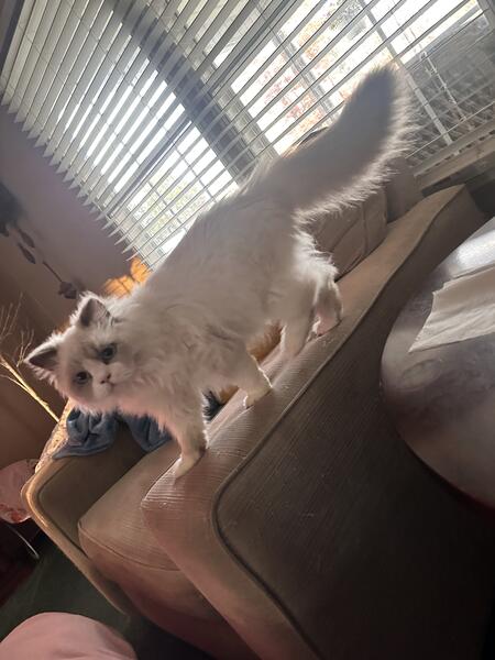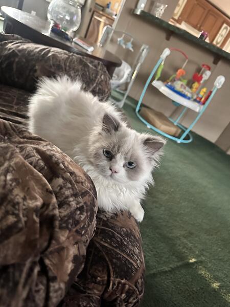 message furrypawshardway about this ad I have a 10 month old male Himalayan Tortie. He still has allot more to grow! Very Beautiful boy! He is up-to-date on all shots as well as been neutered. He is very loving and very playful loves to lay in your lap and play with kitten toys! He is so soft and playful. He loves to follow you and nap at window or beside your chair. Re-homing him for older lady customer. She has became ill had to surrender him back to me. Im a breeder on fb furry paws. I have great reviews. His rehoming fee is $300 was as baby 1500 No papers with this special. Located in Thomasville,Nc 336-830-7224 |