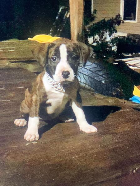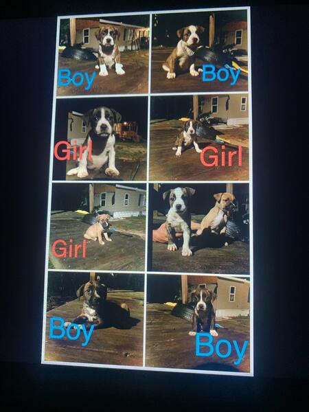 3 females 4 males puppies born May 13 dad is tri Mom is brindle American Staffordshire terrior