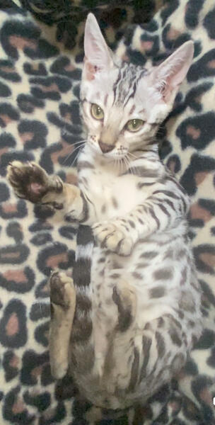 message bgbcats about this ad Gorgeous Silver Spotted male, TICA registered would make a good breeder, silver bengals are rare. $2500 with breeding rights. 6 months old on 11/8/25. Shots and wormed. Pics are from august, recent pics available on request. |