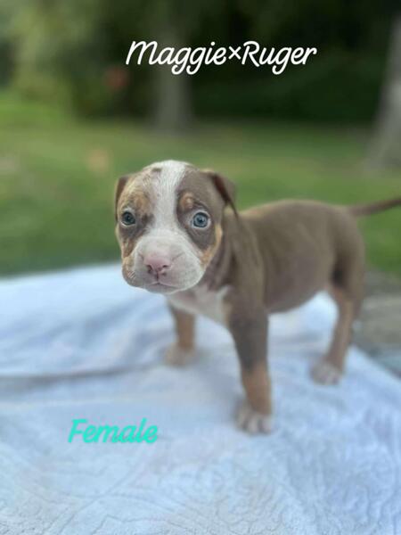message lizbeezy about this ad 2 puppies left Out of Rawhide Bullies "Ruger" Rally Hills "Maggie-Mae" profound pedigrees Maggie is direct decendent from Gottylines Dax. Born June 26th First Vaccinations Dewormed 3x These puppies are stunning. They are either visible merle or a merle gene carrier. ABKC registered $1000 CASH ONLY Pet Home option available for $500 CASH Signed Contracts Text for more pics and pics of parents SixOneFive-753-OneThreeSixOne Just South of Nashville, TN ~ Liz |