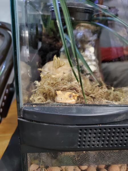message nkyeager about this ad Very friendly crested gecko is now ready for its new home. Its young. Probably around 9 months old. Very easy to handle. Still has its tail. For $150 you can take the gecko, its 12x12x18 bioactive terrarium, isopods, springtails, light, food and food dishes, bark backgrounds and extra cork bark hides, all the decorations needed to put together its larger and permanent home once it grows out of the current home. |