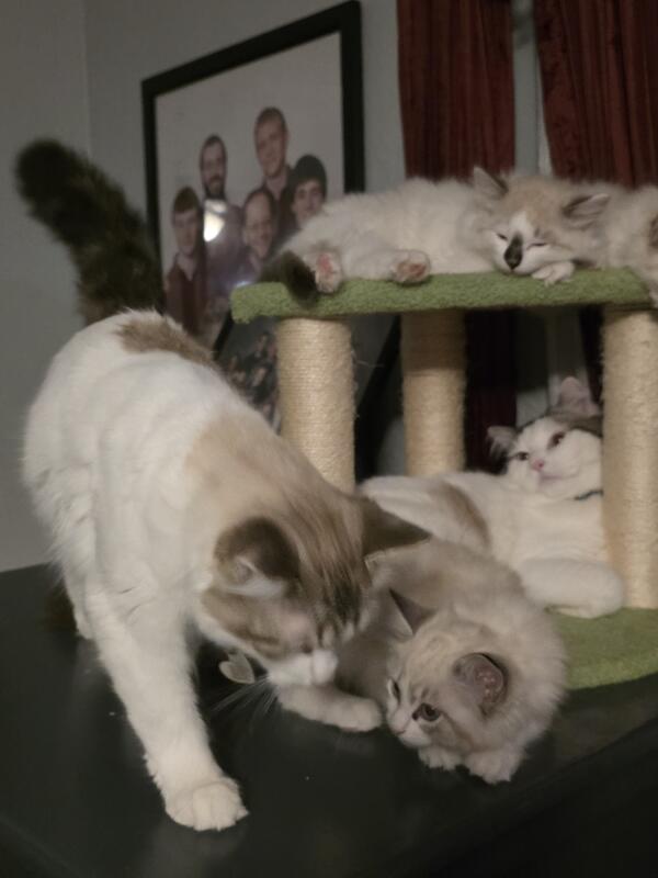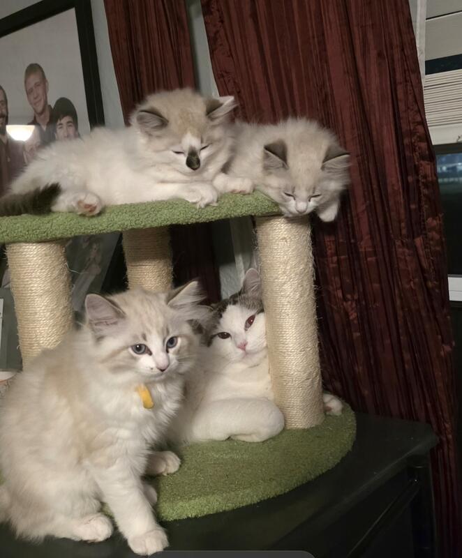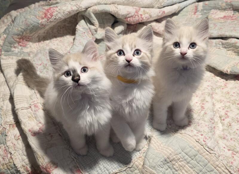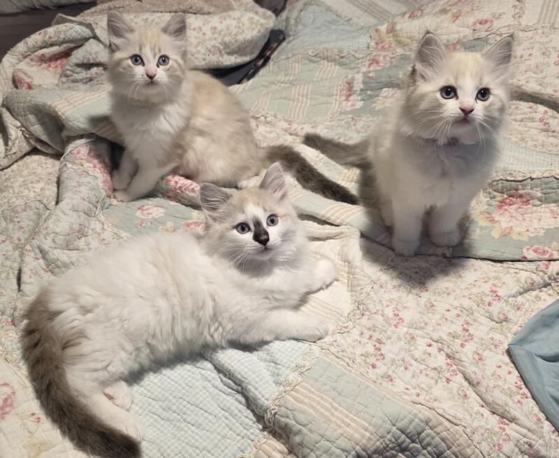 message taterstots about this ad We have 2 ragdoll kittens left! 1 male 1 female. The black nose boy is reserved. Penelope and Tater's 1st set of babies are now 10 weeks old and ready to be rehomed! These are RAGDOLLS and have had their 1st set of shots. They are not registered and are litter box trained. Our kittens are raised indoors as a part of our family. Every kitten comes preloved by our familywhich includes 4 more adult cats, and a black lab dog for good measure. They have all age appropriate vaccines, health examinations given by our vet Ready today but we will GLADLY keep til christmas. Please contact us at 757.343.7261 |