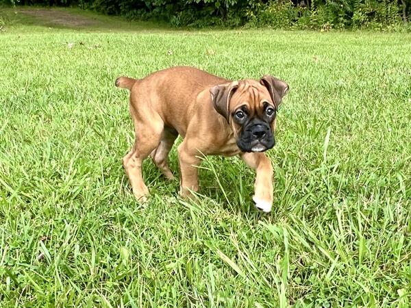message lkmershon about this ad We have two AKC male Boxer puppies available with full registration. DOB 5-20-24. Ready to go. Up to date on shots and deworming. Tails and dew claws are done. Playful, healthy pups! Price lowered to $800. Located in Carbon, IN. Please text or call (812) 2 three 6- six 3 one 7 for more info. |