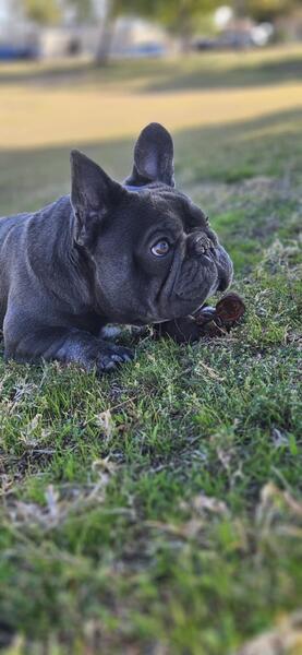 A black French bulldog, short, thick , and compact Mesa Az
