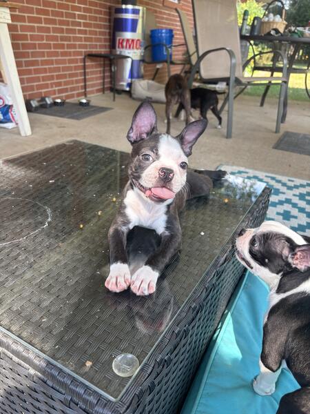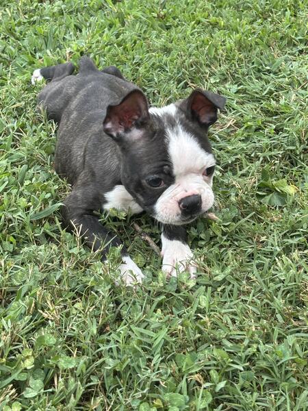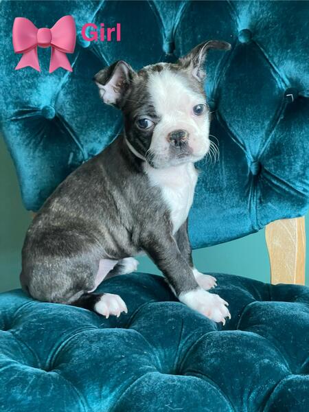 message mugslyk about this ad Two adorable, cuddly, spunky, and sweet 8 week old Boston Terriers looking for a new home. One male and one female are available. Both have brindle and white fur. They have had one round of shots and are very healthy. They do not have papers but they can be registered with the CKC. These sweet babies are ready to join your family today! |
