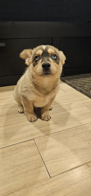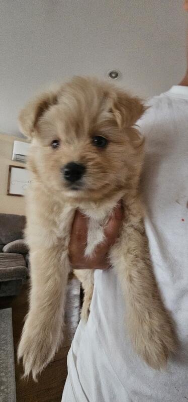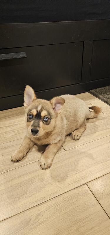 message xplaces about this ad These two female pups are same litter sisters. Father is a 5th generation Pomsky and mother is half pomsky half yorkie. Both absolutely adorable and healthy. 10 wks old. Brown pup with short hair has 2 blue eyes. Long hair cream color pup has 1 blue and 1 brown eye. |
