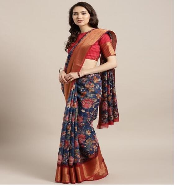message rohinee about this ad Product Code: 10258193 Design Details: Navy Blue and Red printed saree and has a woven design border Blouse Piece The model is wearing a blouse from our stylist's collection, see the image for a mock-up of what the actual blouse would look like Length: 5.5 metres plus 0.8 metre blouse piece Width: 1.06 metres (approx) Update your wardrobe staples with this exquisite daily saree from Saree mall. This navy blue design can be paired with an elegant pair of heels and minimalistic silver jewellery for your next family event. Saree fabric: linen blend Blouse fabric: cotton blend Hand-wash httpsmyntr.it/1Araajk |