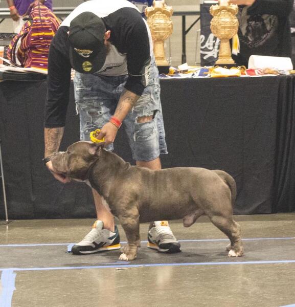 message godlymadebullyz about this ad GrChKaos son GrChClassicMan Open for stud One of the legends best sons ready to work 26in head 15in tall Abkc pocket Grand Champion |