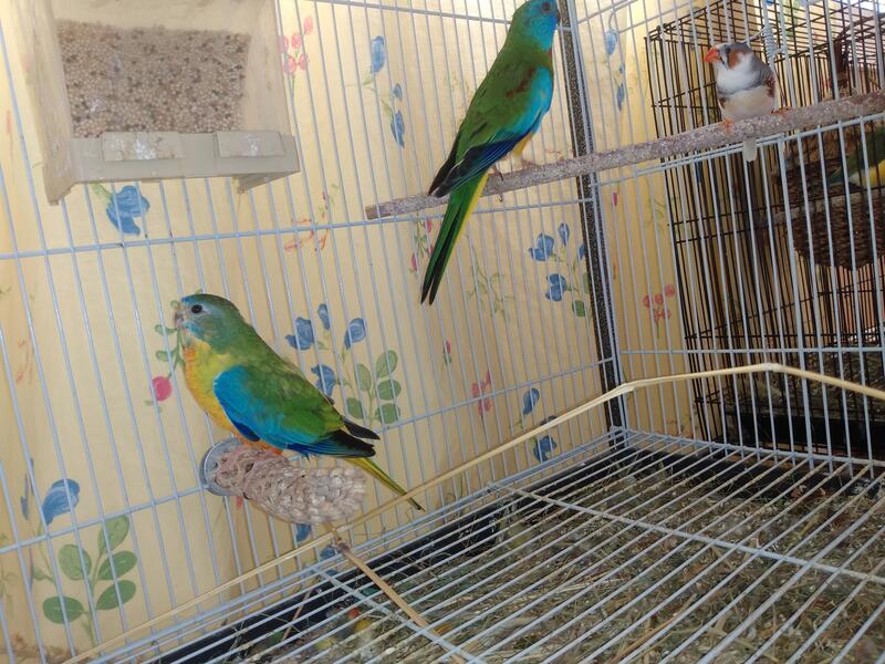 Adult gorgeous and colorful Scarlet chested parakeet and Torquisine. $300 each. Willing to trade with female.